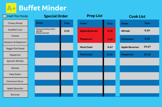 Buffet Minder™ is the new top of the line solution for Product Management. Buffet Minder™ anticipates and displays what to cook throughout day parts based on forecasts and current products that are cooking or in product holding.